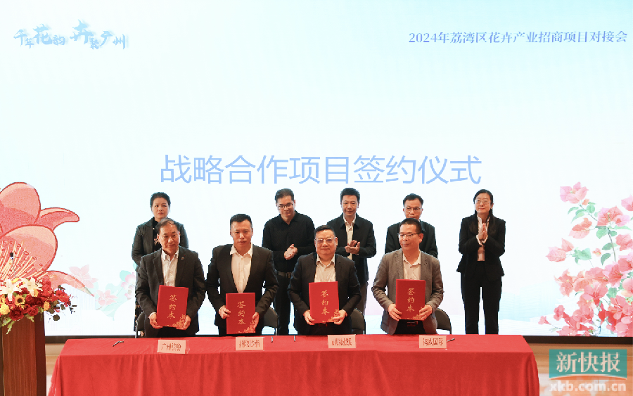 新快報訊 花地接花津,四時皆似春。12月6日,荔灣區在1906科技園舉辦2024年荔灣區花卉產業招商對接會。會上,荔灣區招商和農業部門與相關花卉協會及頭部企業簽訂11份戰略合作協議,荔灣與花都兩區農業部門簽訂花卉產業高質量發展合作協議。