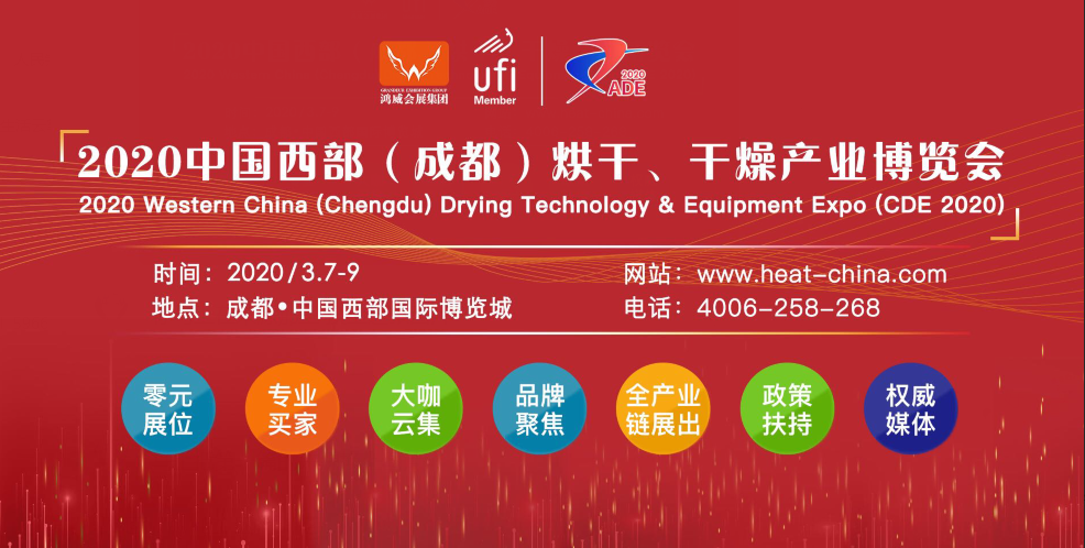 最后,誠摯邀請各媒體人和專業觀眾撥冗光臨2020年3月7-9日中國西部(成都)烘干、干燥產業博覽會,共享平臺和商機,拓展市場,合作共贏!